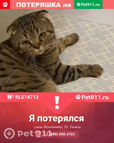 Шотландский вислоухий,кличка кекс Пропал в р...