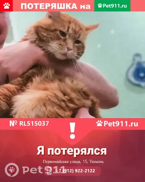 Кошки потеряшки, Тюмень, фото: Потеряшка кошка по ул. Профсоюзная 65, кличка Вулкан, порода Мейн-кун, 8 лет.