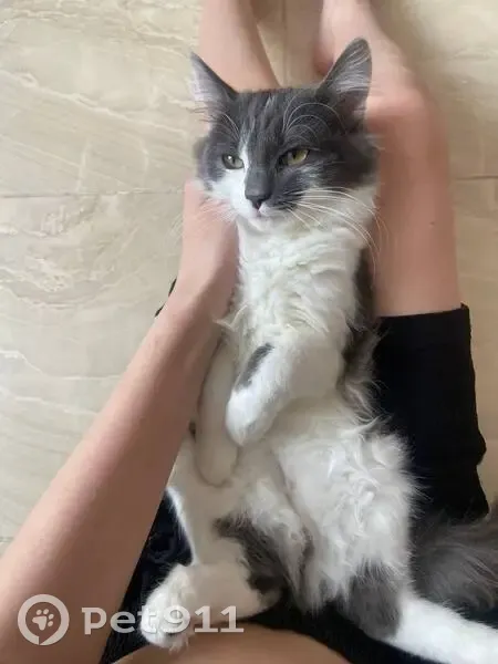 Окрас серо-белый, сбежал из дома, кот домашни...