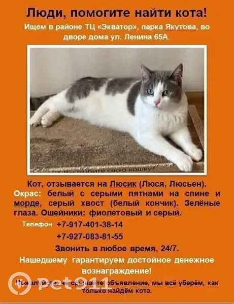 Пропала кошка, Ульяновых 46, У...