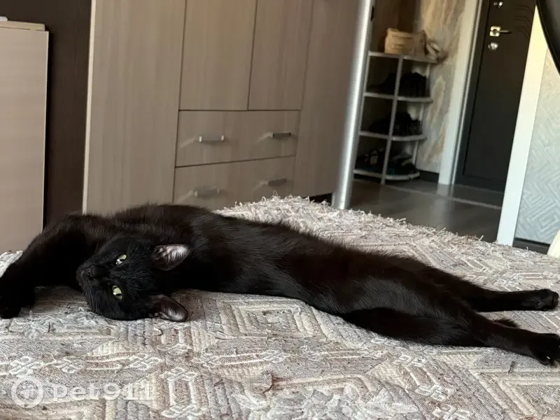 Чисто черный, зеленые глаза, не большой, в си...
