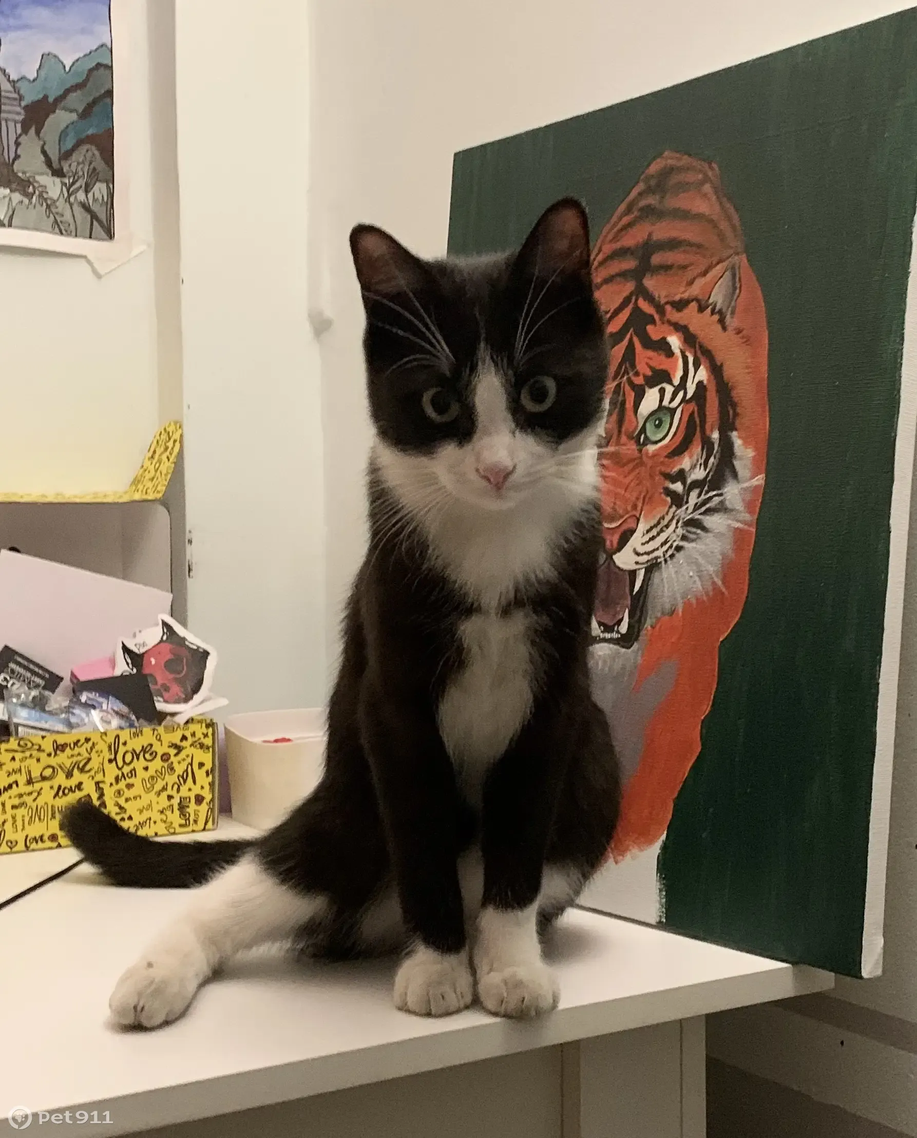 Кошки потеряшки, Ульяновск, фото: Потеряшка кошка: Черно-белый кот, ошейник с колокольчиком, Кузоватовская улица, 27, Ульяновск