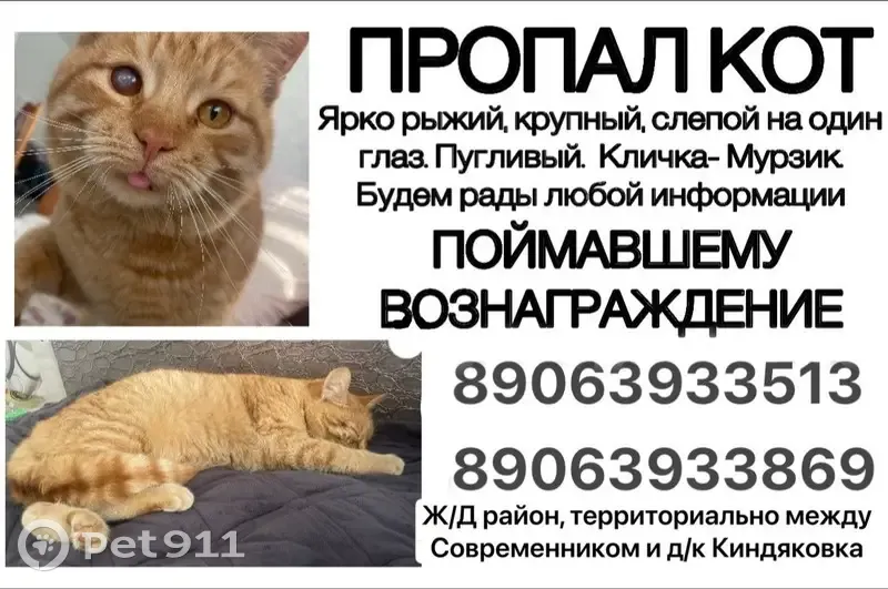 Слепой на один глаз, крупный, ярко рыжего цве...