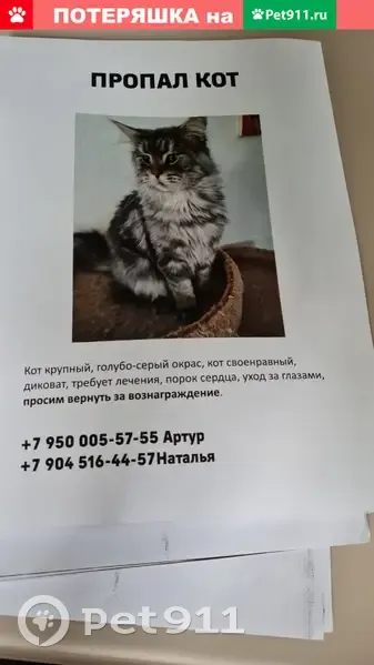 Пропал кот!Нуждается в лечении,кот не контакт...