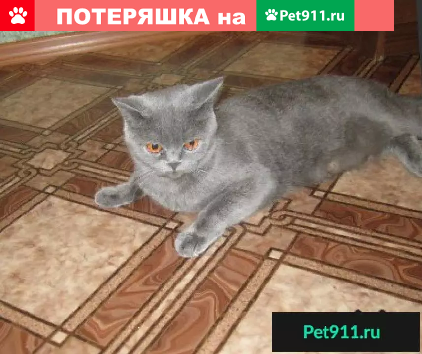 Пропала кошка породы британская короткошерстн...