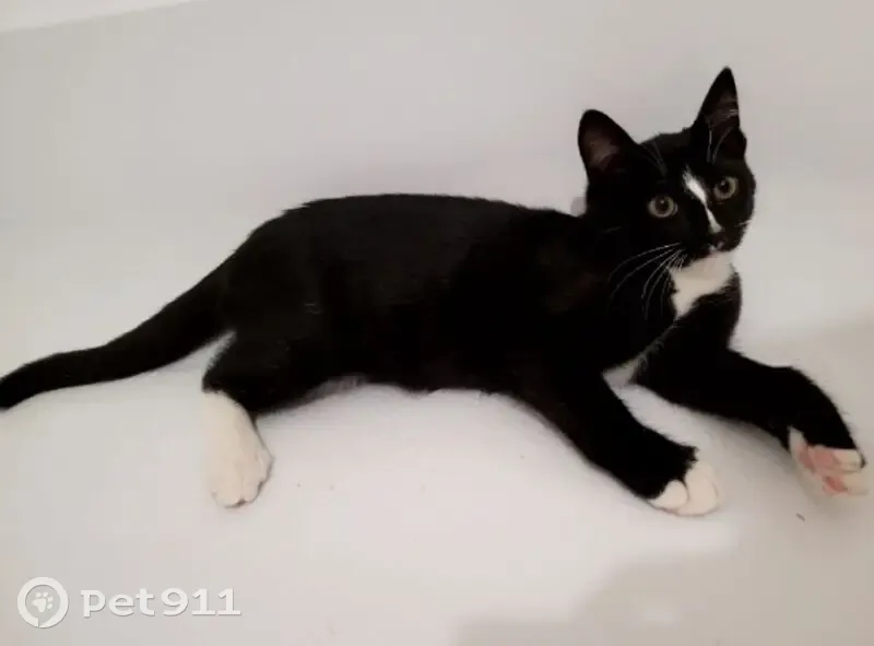 Чёрный короткошерстный кот 1.5 лет. Белая пол...