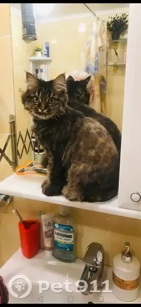 Трёхцветная молодая кошечка, вислоухая. Очень...
