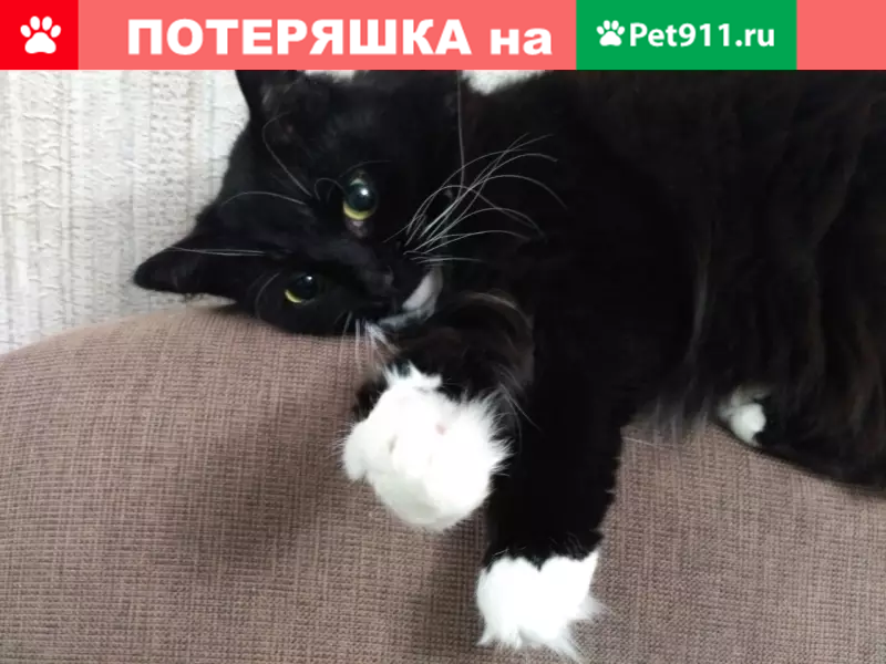 ПРОПАЛА КОШКА! Черная, с белыми усами, лапка...