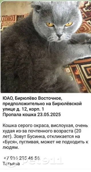 Пропала кошка, Бирюлёвская ул....