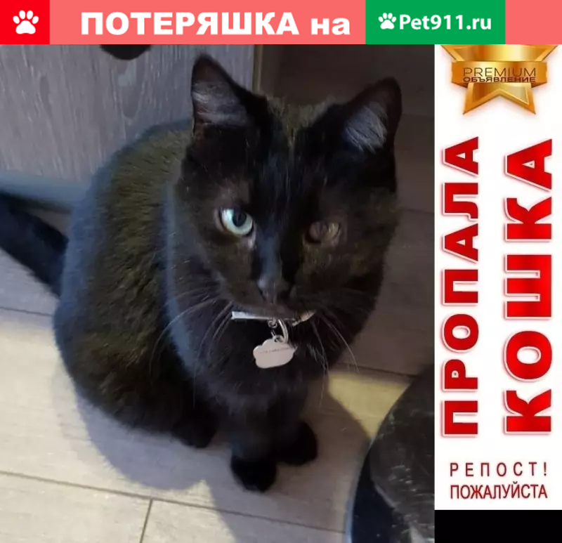 Пропала домашняя чёрная кошка...