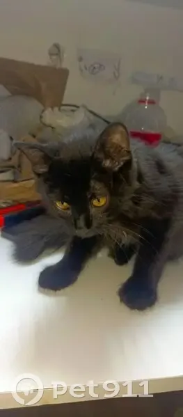 Черный котёнок на вид месяцев 4-5, на грудке...