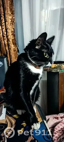 Кошки потеряшки, Вязьма, фото: Потеряшка кот, улица Льва Толстого, 1, Вязьма - черно-белый с коричневым ошейником