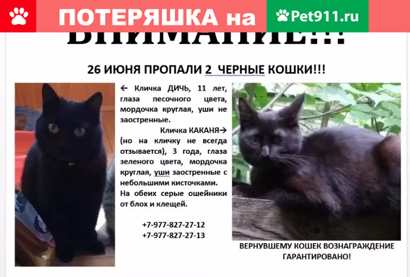 Пропали две чёрные кошки , их нет уже 10 дней...