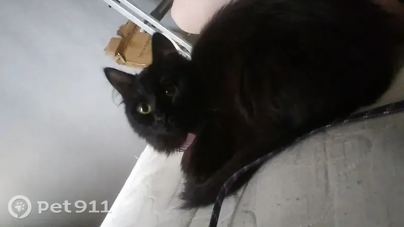 Черного окраса, пушистая, пятнышко сбоку, был...