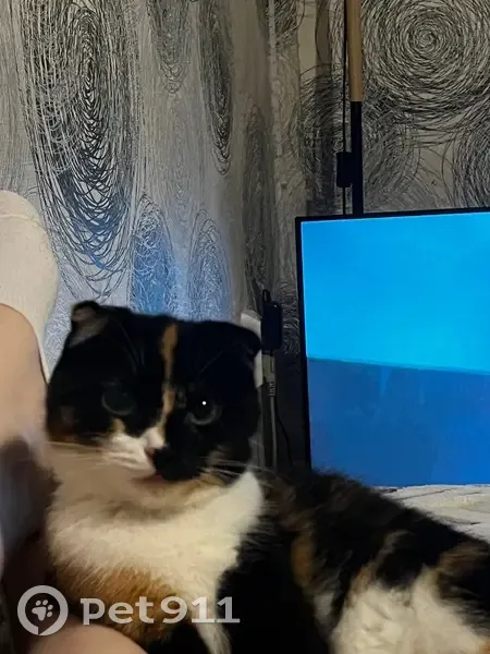 Вислоухая кошка, черный рыжий белый окрас. Во...
