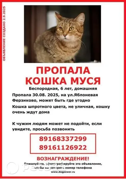 Пропала кошка, Центральная ул....