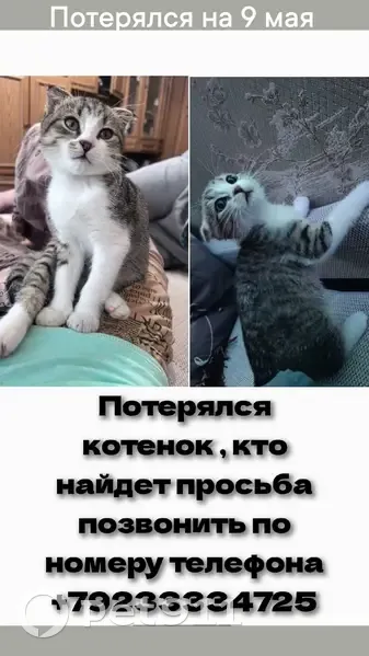 Потерялся кот! Серо-розовый окрас, зелёные гл...