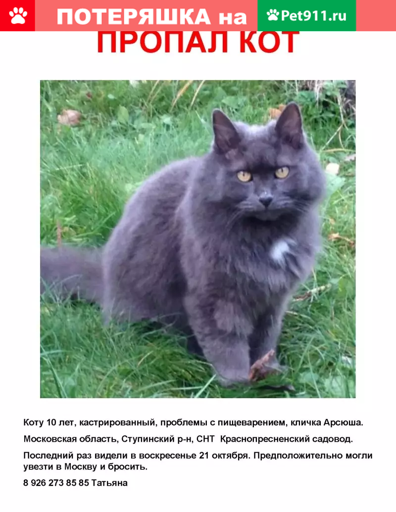 Пропала кошка Мусик, Московска...