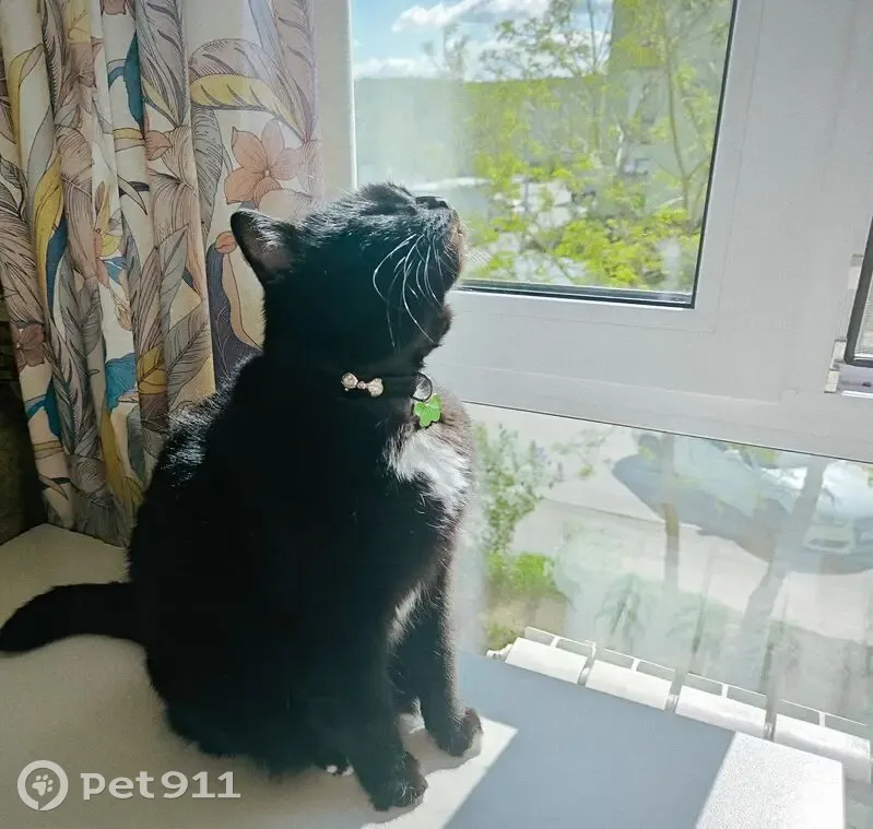 Пропала кошка черного цвета,грудь и живот бел...