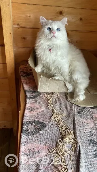 кот,белый,пушистый,глаза голубые,в ошейнике с...