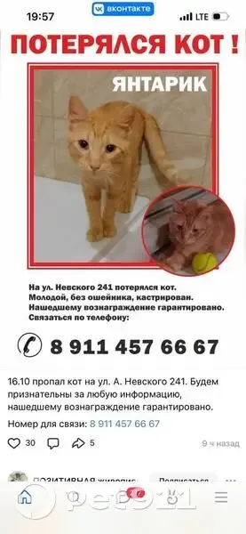 Кошки потеряшки, Калининград, фото: Потеряшка рыжая кошка, Невского 241