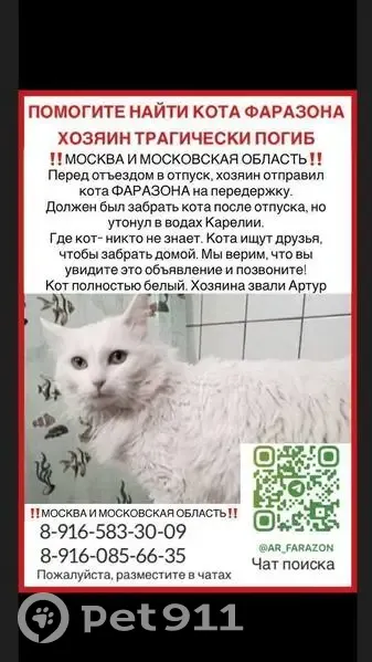 Разыскивается белый кот по имени - ФАРАЗОН! Х...