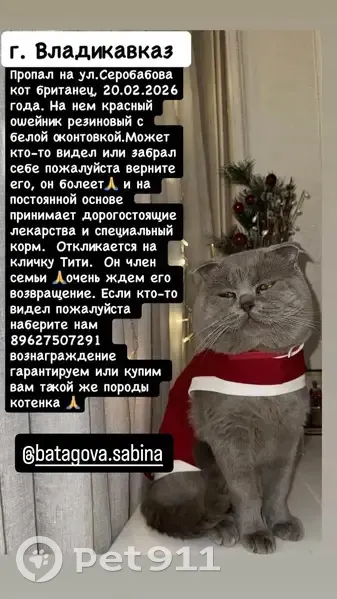 Пропал кот, Владикавказ, Север...