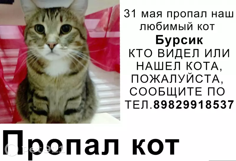 Потерялся кот по кличке Мурзик ему примерно 5...