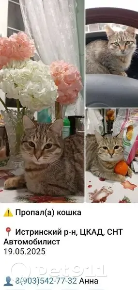 Кошки потеряшки, Московская область, фото: Кошка пропала у Дарьино парк, МО