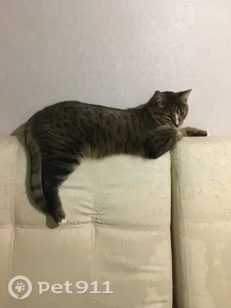 Окрас буро-серый. Вылез из окна по дороге Лап...