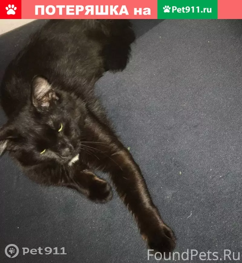Кошки потеряшки, Тольятти, фото: Потеряшка кошка в Тольятти, возраст 3 года, с белым пятном на шее, отзывается на имя Вася
