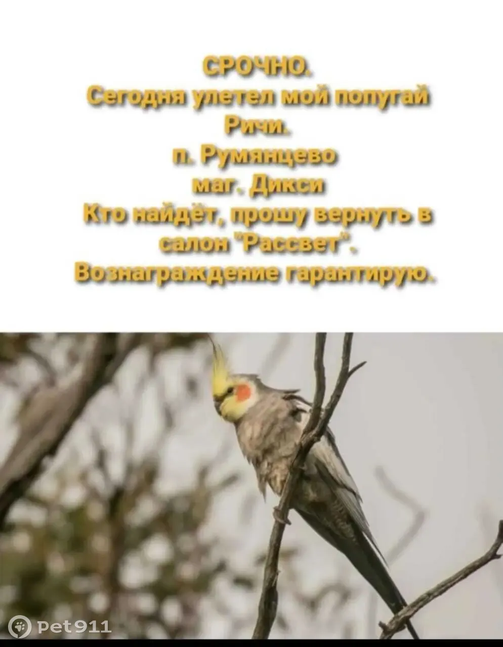 Пропала птица Ричи, верните в...