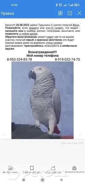 Пропал попугай Жако, 5-я Тарус...