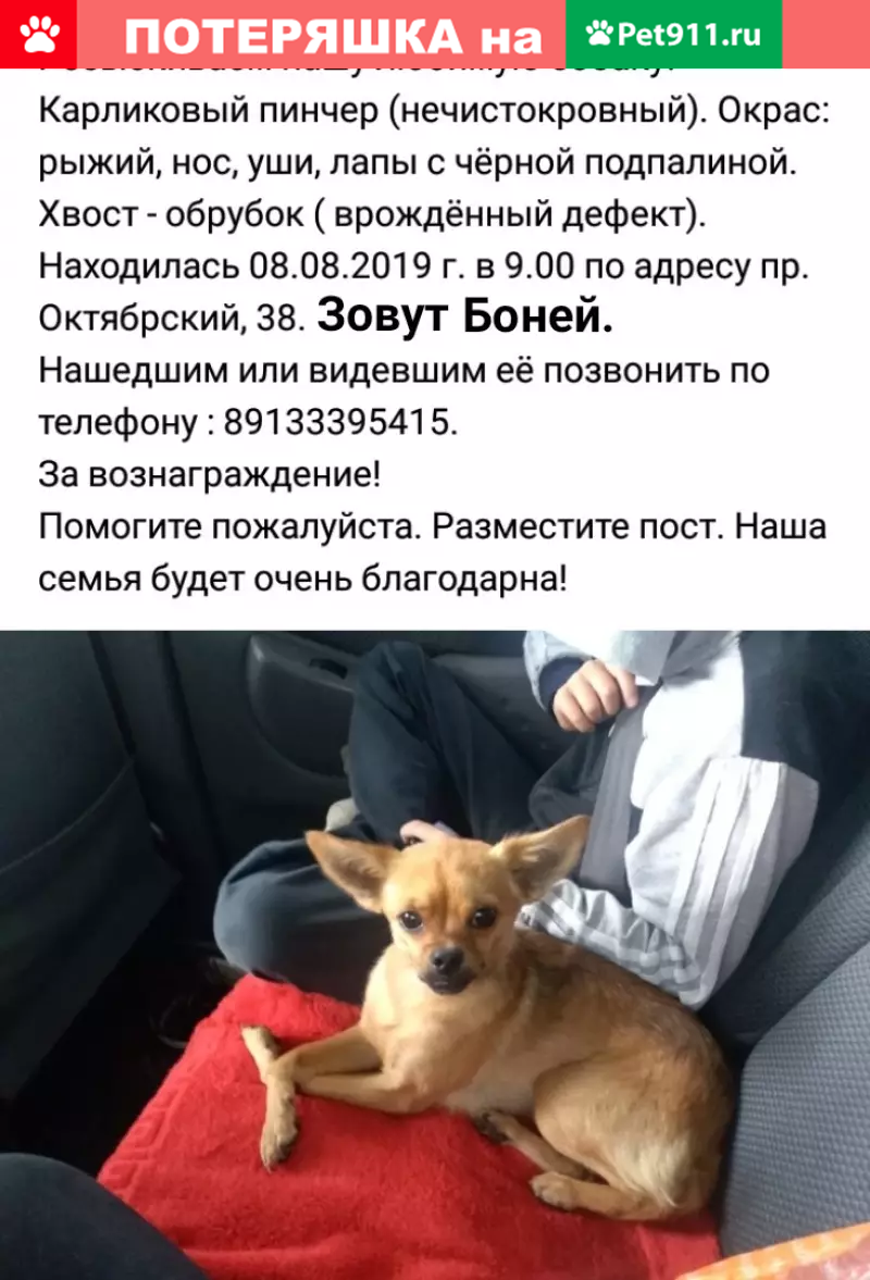 Внимание!!! Потерялась собачка. Зовут Боня. О...