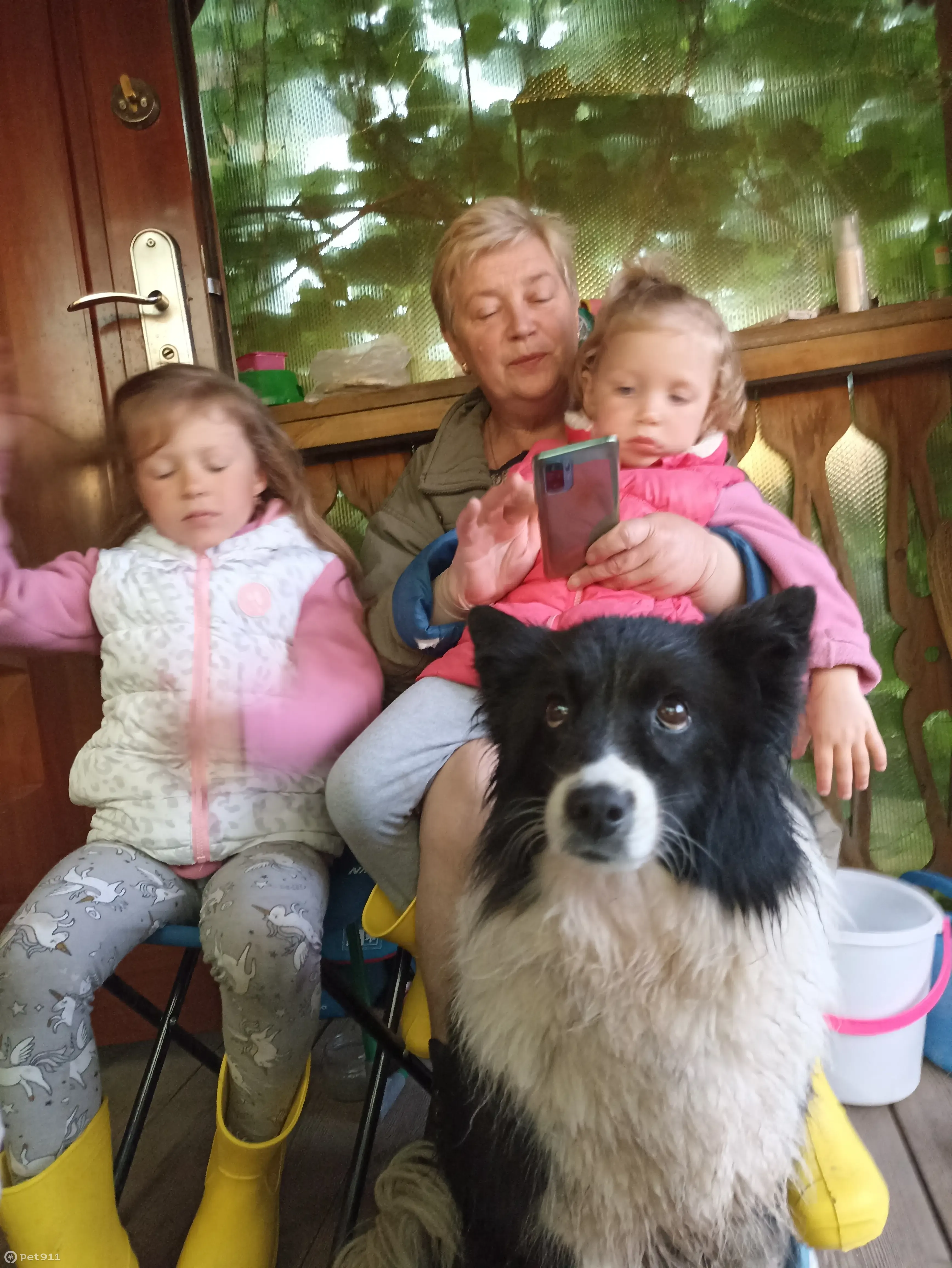 Девочка. Белая с чёрным шерсть. Побежала с на...
