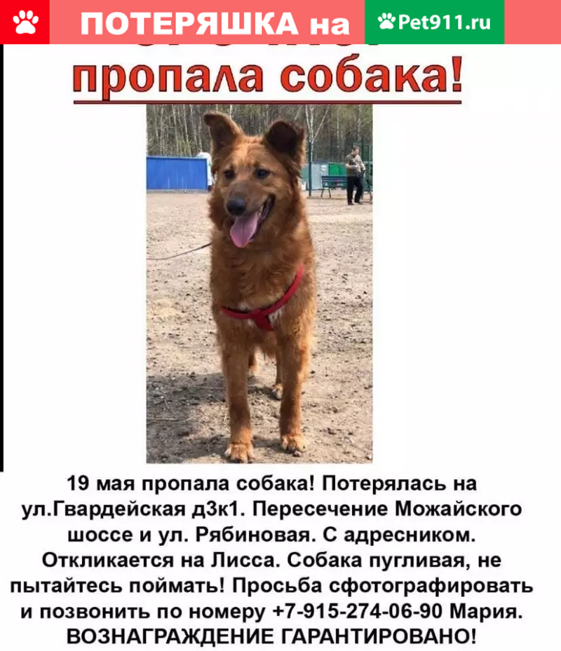 Пропала собака в Москве.
