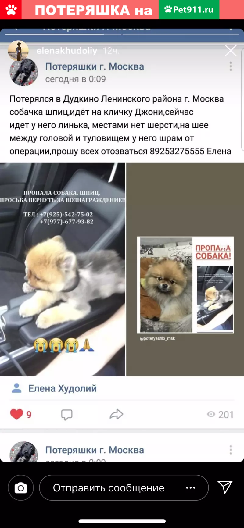 Помогаю людям информационно с поиском собаки:...
