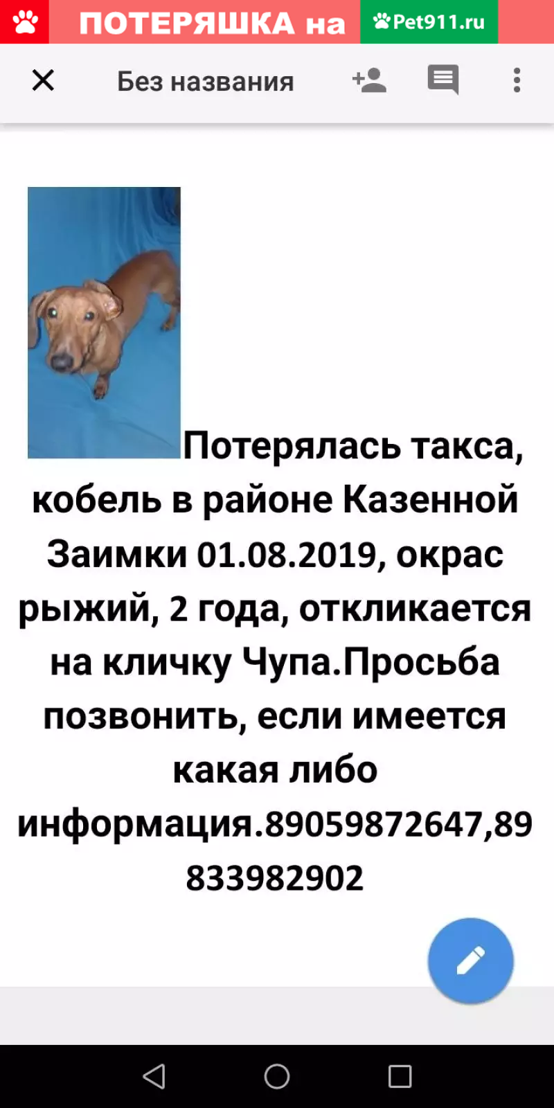 1. 08. 2019г. Пропала такса мальчик, воспитан...