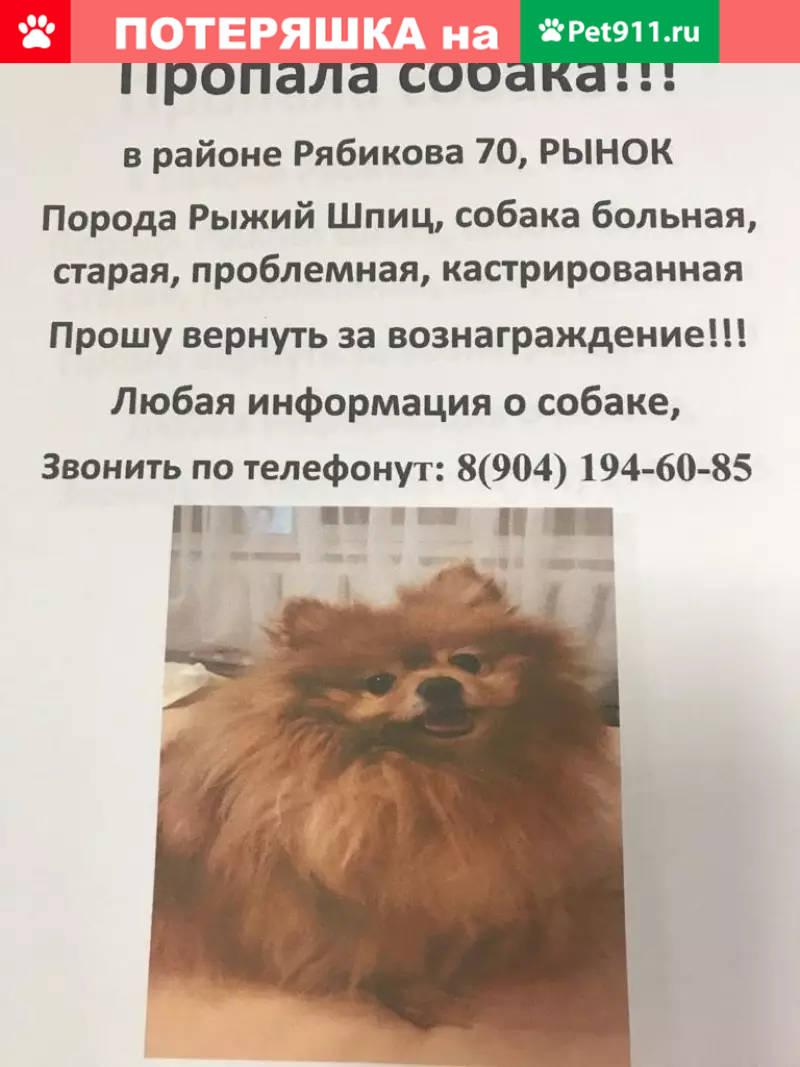 Собаки потеряшки, Ульяновск, фото: Потеряшка собака Шпиц в Ульяновске, вознаграждение 50000