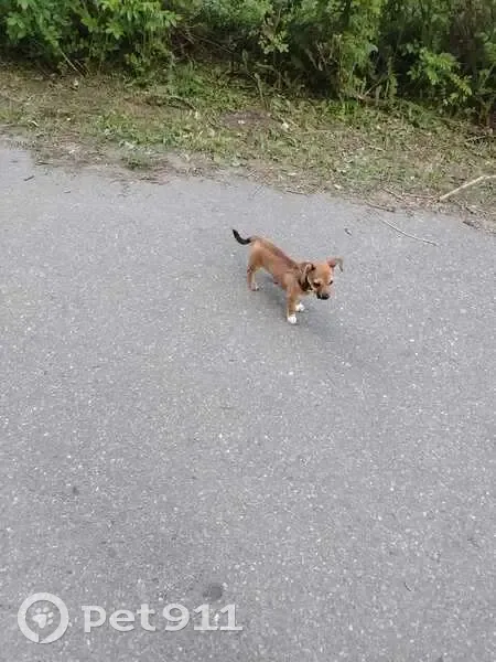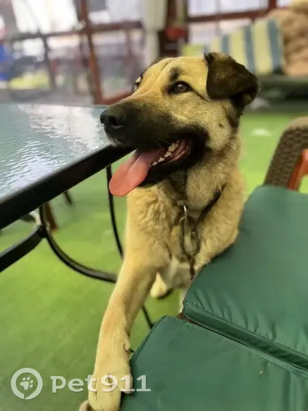 Окрас рыжий,сильно напуган,на шее весит брело...