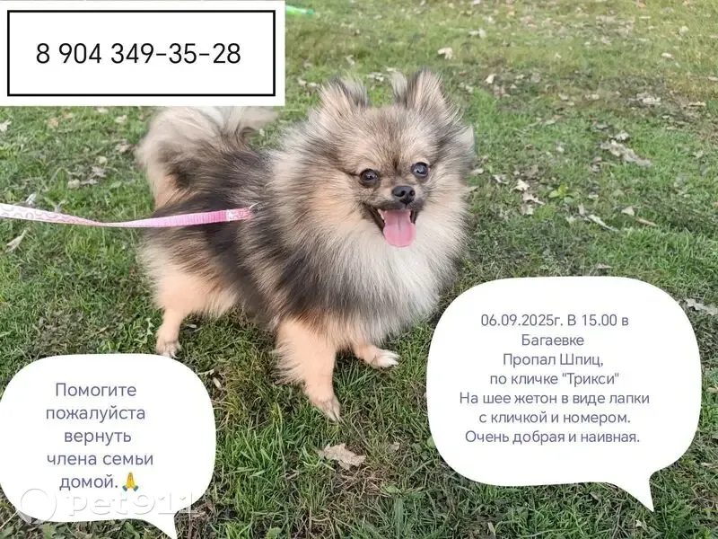 06.09.25 Пропал шпиц по кличке "Трикси", в Ба...