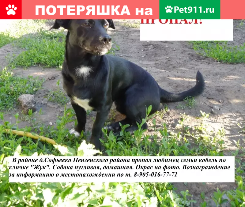 Пропала собака в ночь с 28. 08 - 29. 08 Малая...