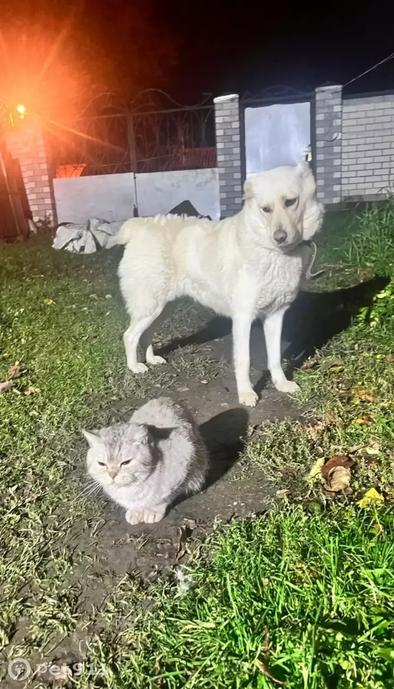 Собаки потеряшки, Москва, фото: Потеряшка собака Юки, метис Алабая, белого цвета в Горках Коломенского района.