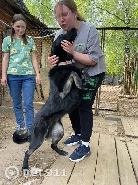 Визуально похож на овчарку, добрые карие глаз...