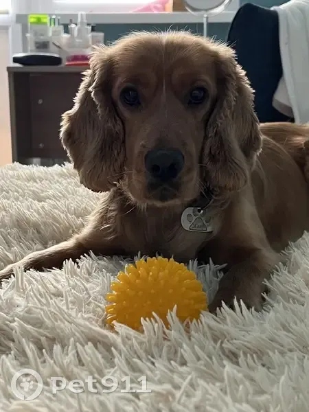 Спаниель рыжий, кличка Ягер, с ошейником