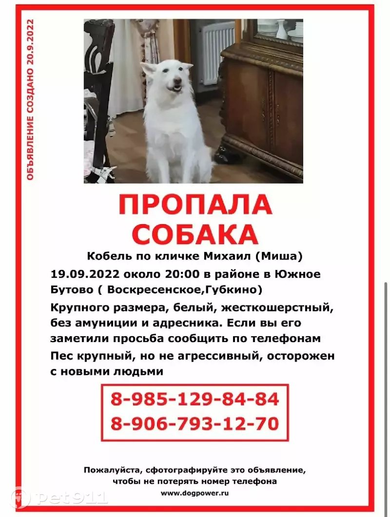 19.09.2022 около 20:00 потерялся пёс по имени...