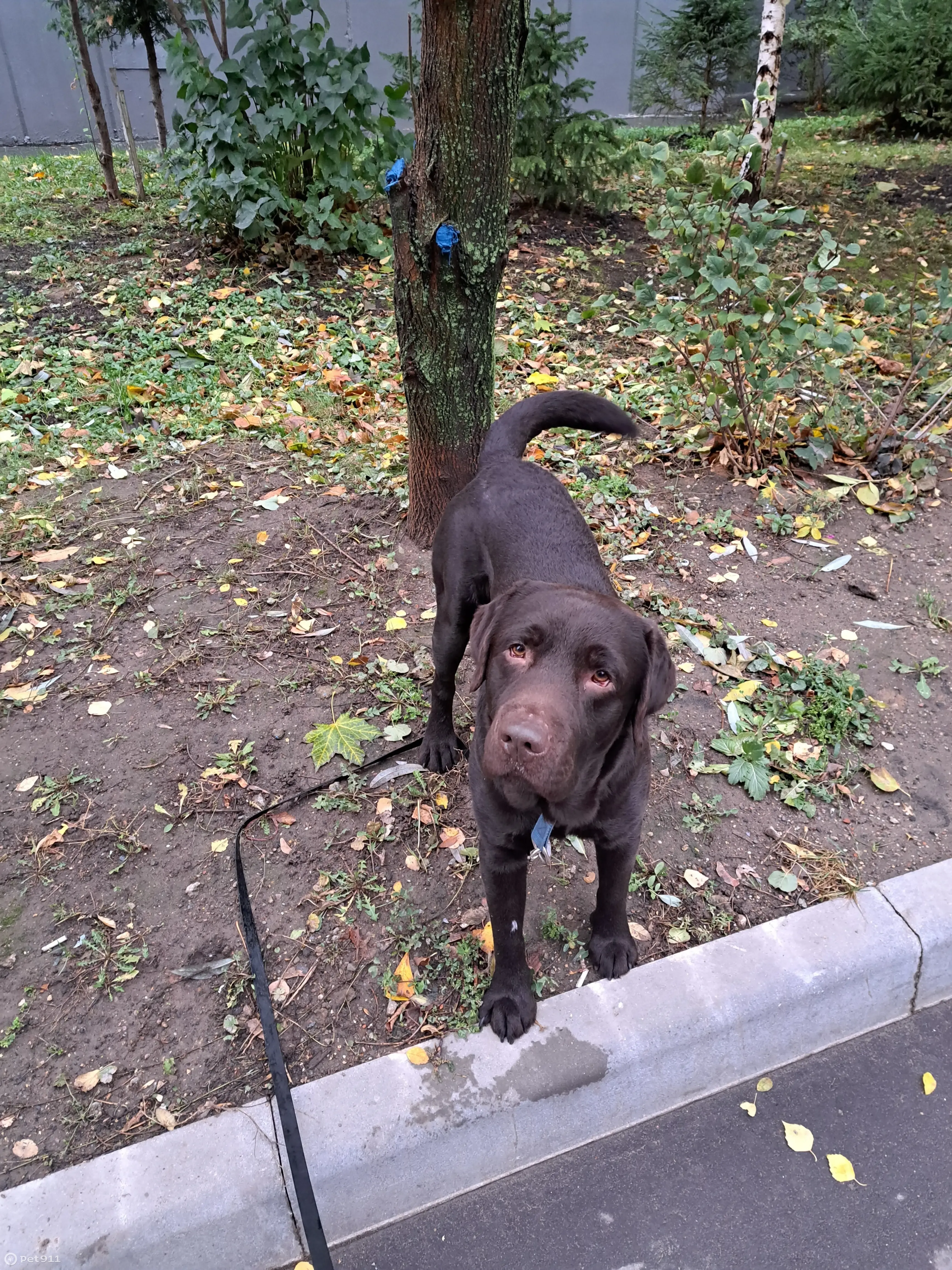 Шоколадный лабрадор, есть чип, нет адресника,...