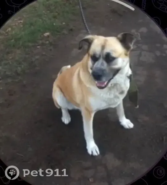 Окрас рыжий,на шее ошейник,откликается на кли...