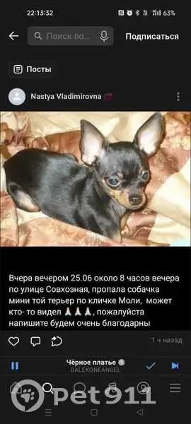 Тойтерьер пропал в селе Малая...