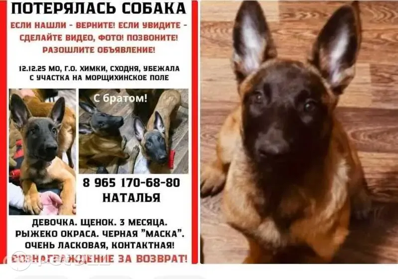 Рыжая с черной маской.Малинуа 3 месяца,нашла...